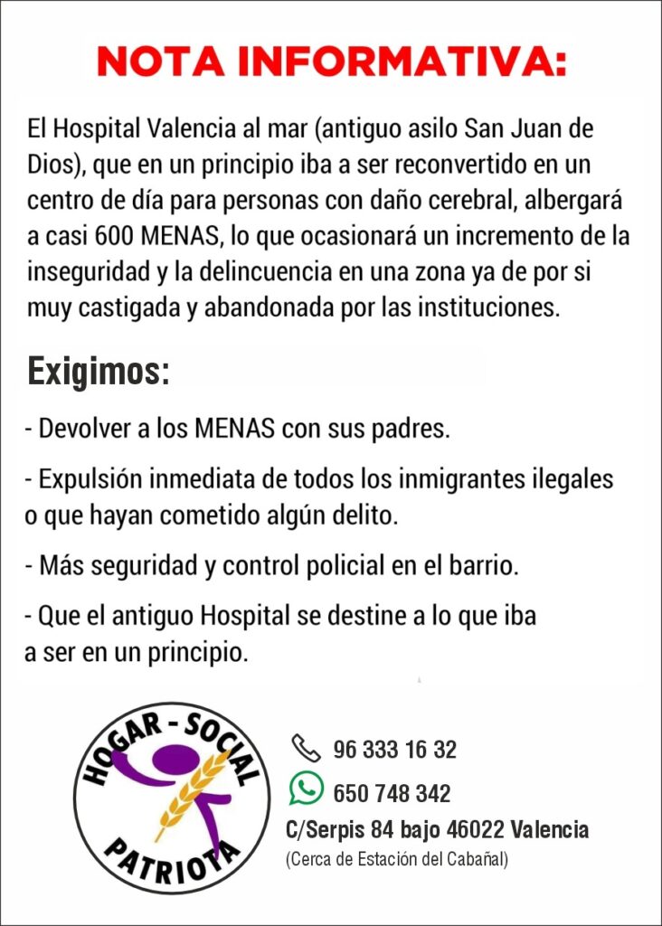 El antiguo Hospital «Valencia al Mar» de la Malvarrosa, un edificio emblemático de la ciudad de Valencia, está destinado a convertirse en uno de los mayores centros de menas de toda España. Esto significaría albergar a casi 600 menas e inmigrantes ilegales, con el impacto negativo que eso puede tener en el barrio y en toda Valencia.